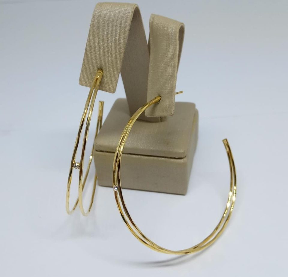 ARGOLA DOIS FIOS COM PEDRA BANHO DOURADO
