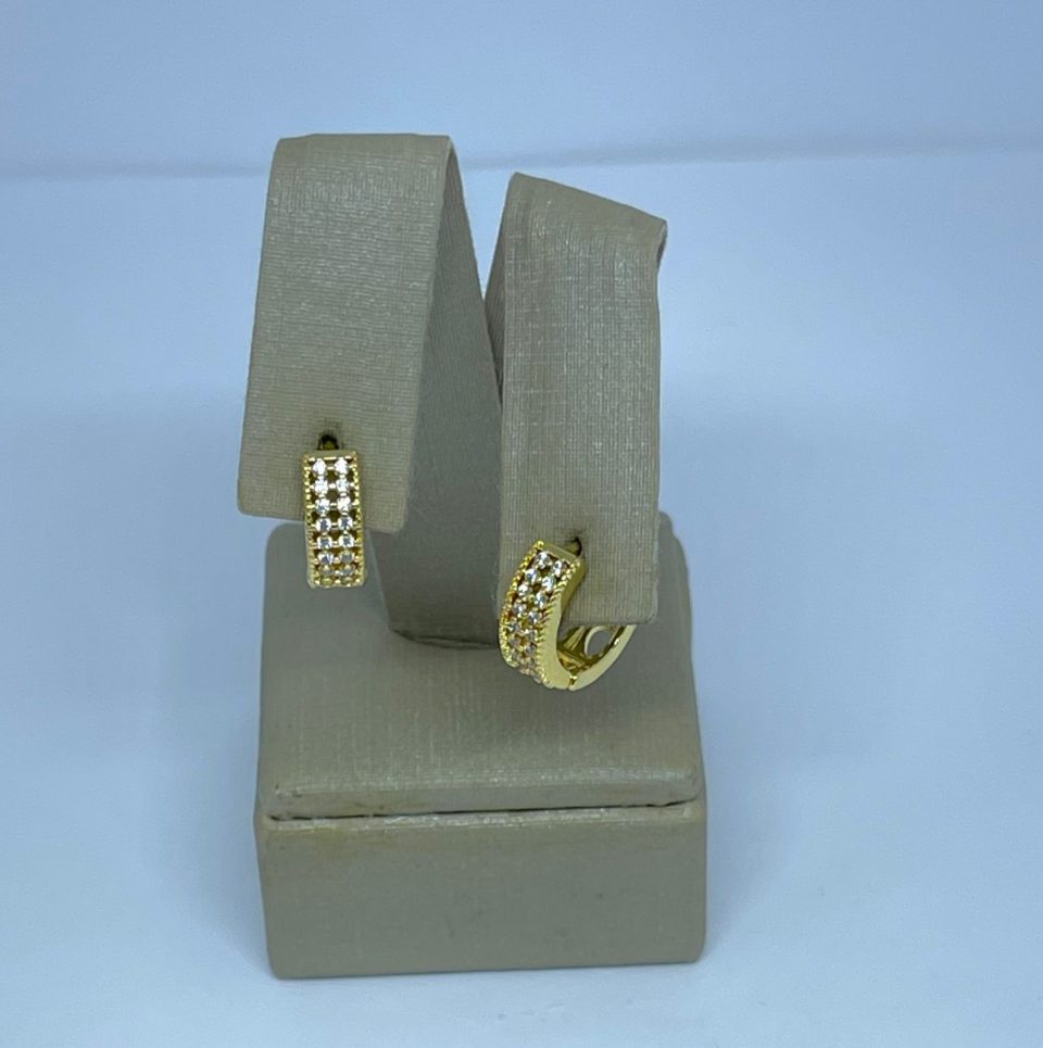 ARGOLA M DUAS FILEIRAS 16 ZIRC. BANHO DOURADO