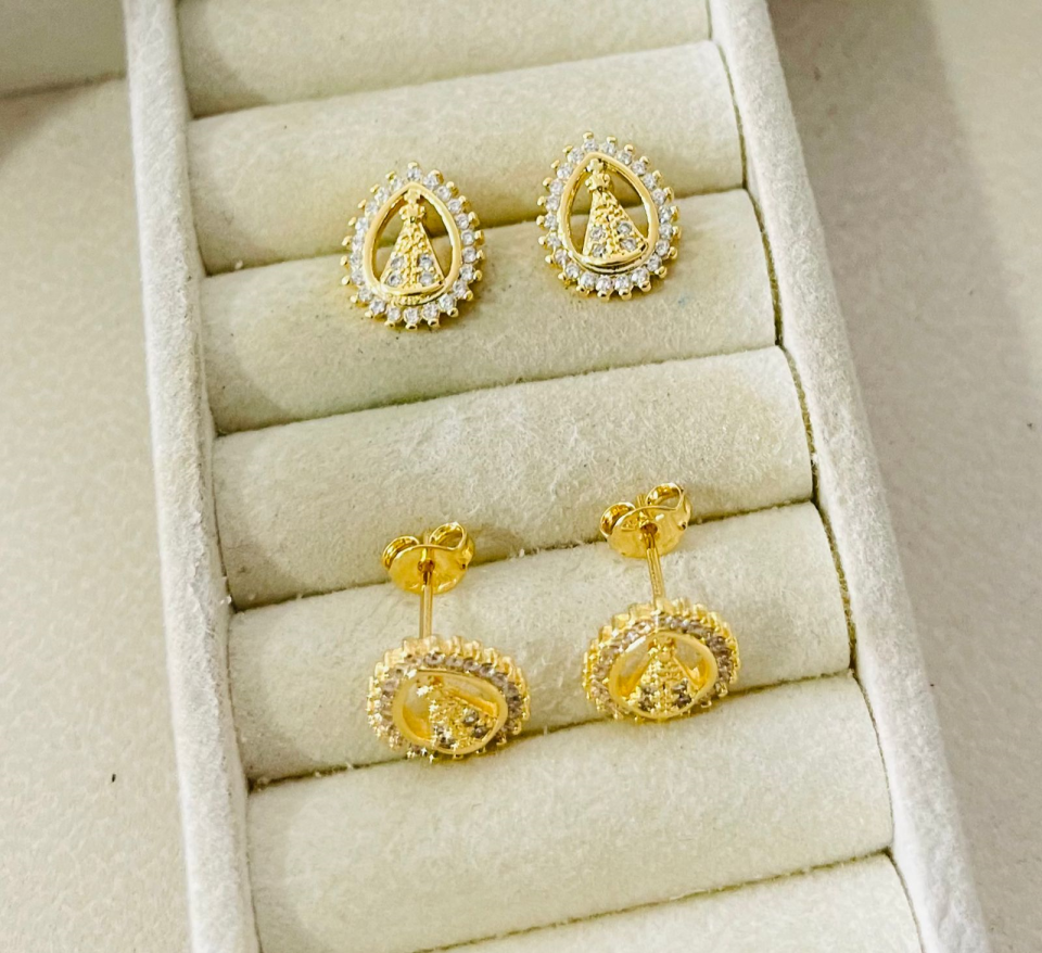 BRINCO N.S OVAL TODO CRAVEJADO BANHO DOURADO