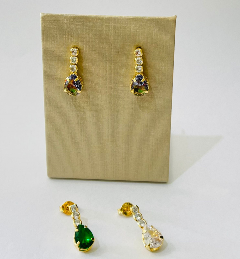 BRINCO PEND. ZIRC. 6X8 BANHO DOURADO