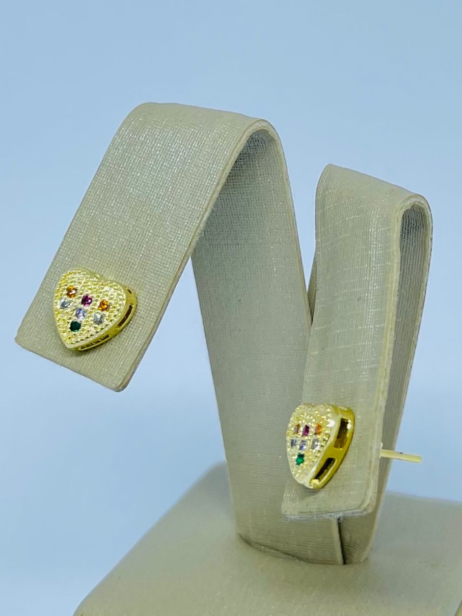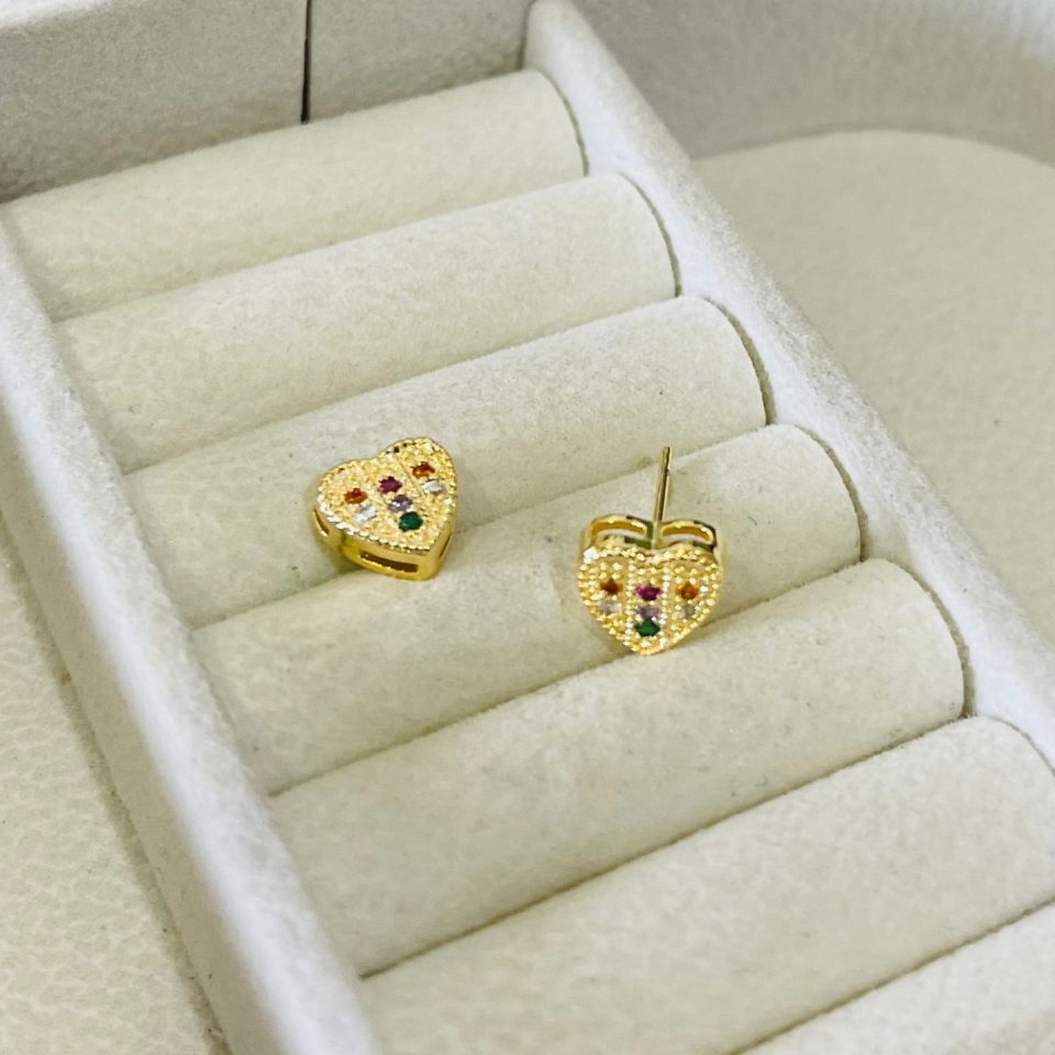BRINCO CORACAO SETE ZIRC. TAM 8 BANHO DOURADO
