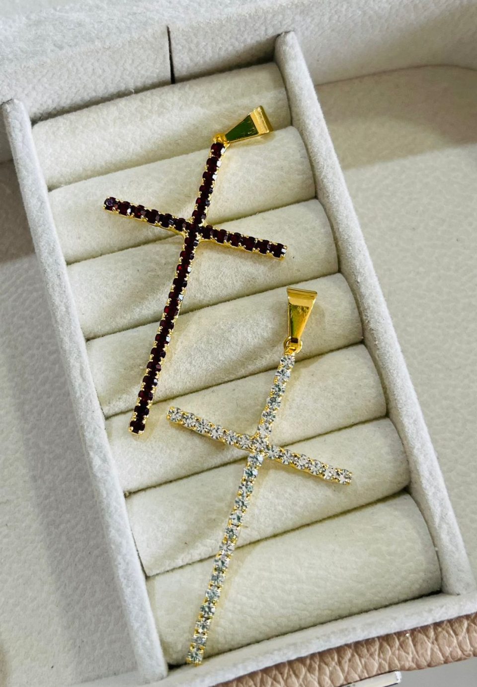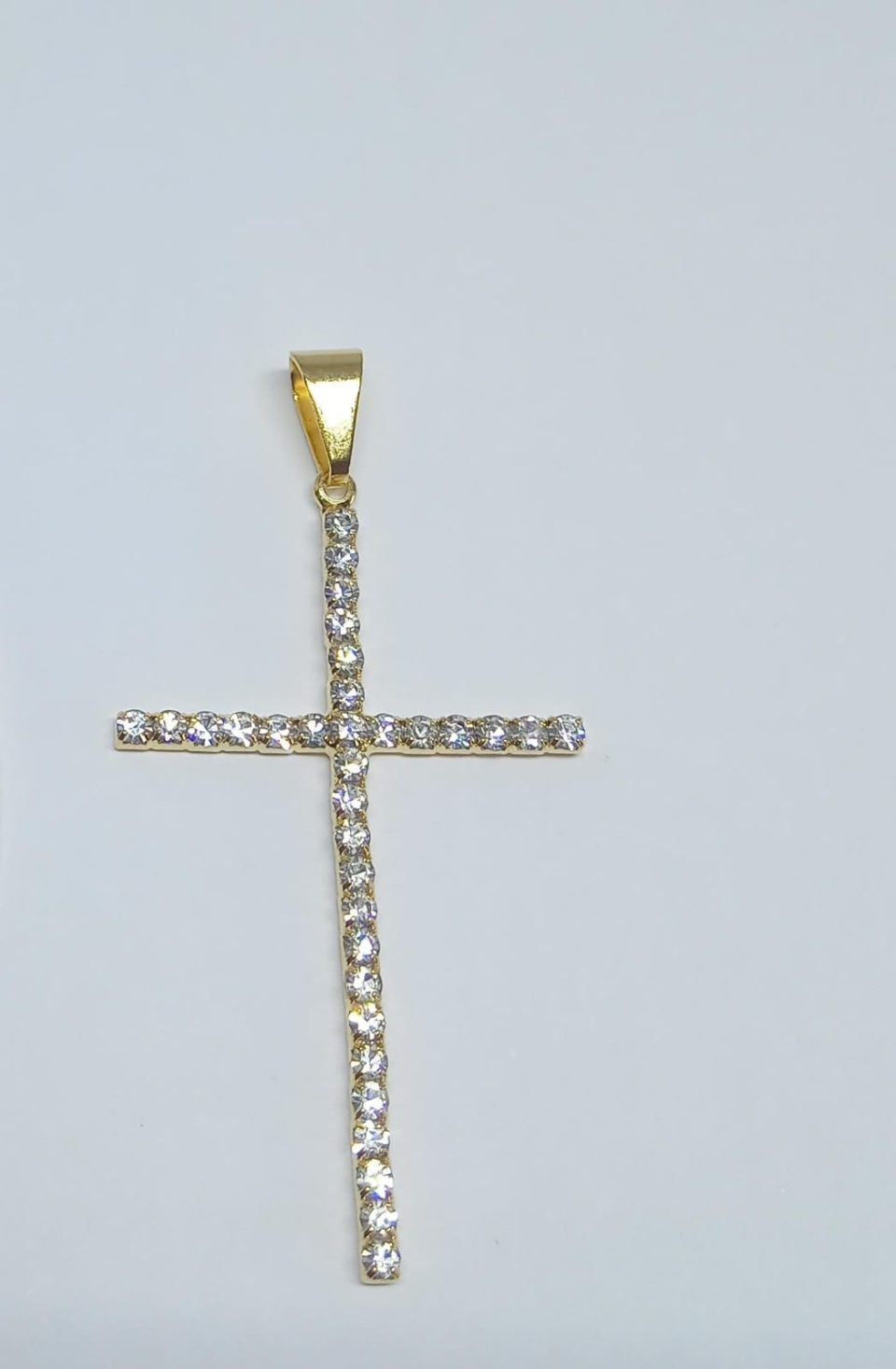 PINGENTE CRUCI. TODO DE PEDRAS BANHO DOURADO