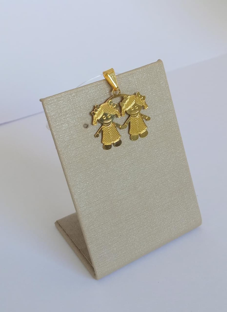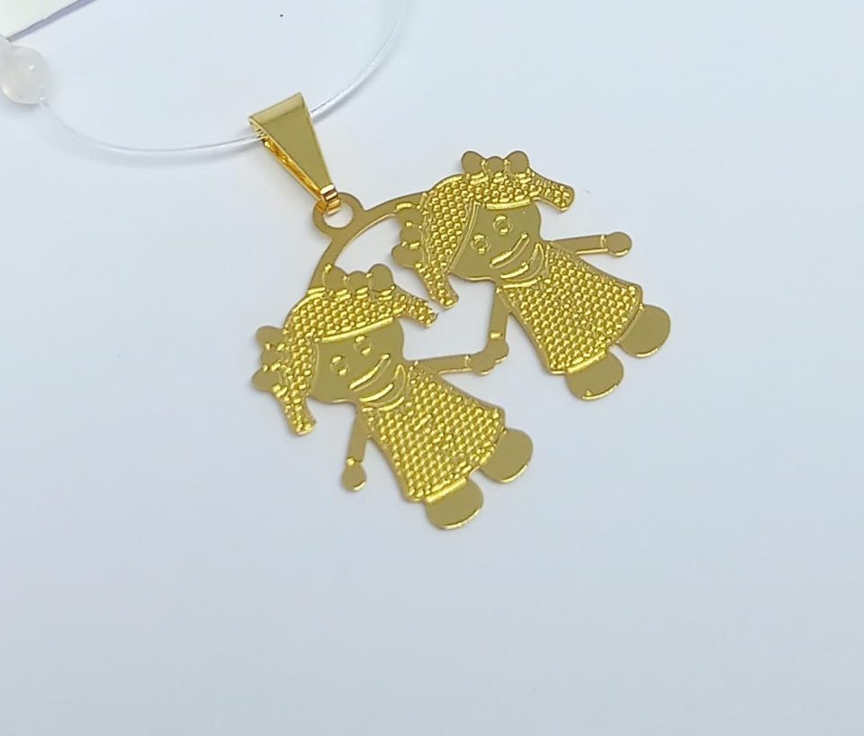 PINGENTE DUAS MENINAS CM DETALHES BANHO DOURADO