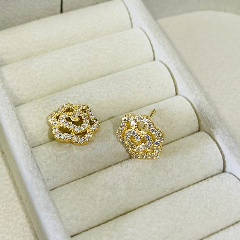 BRINCO ROSA VAZ CRAV BANHO DOURADO