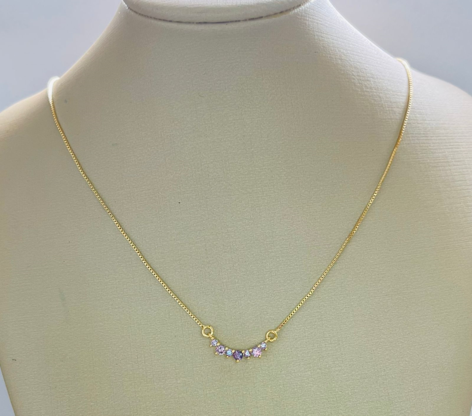 GARGANTILHA COM PEDRA CORES BANHO DOURADO