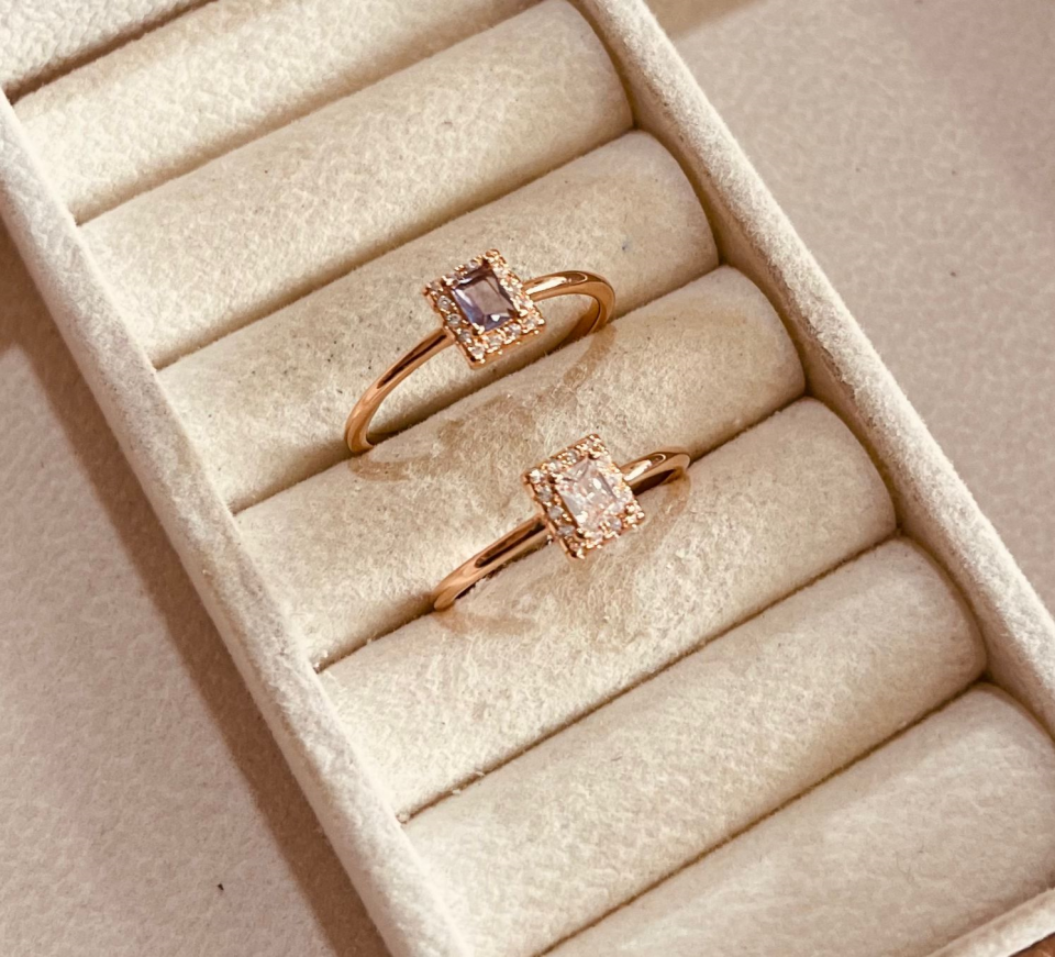 ANEL SOLITARIO CENTRO QUAD. FRIZ. BANHO ROSE