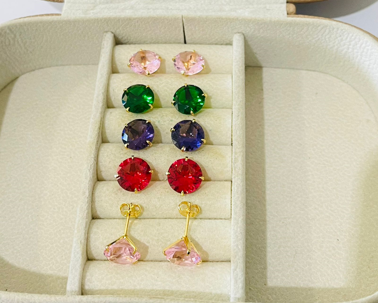 BRINCO ZIRCONIA REDONDA 10MM BANHO DOURADO