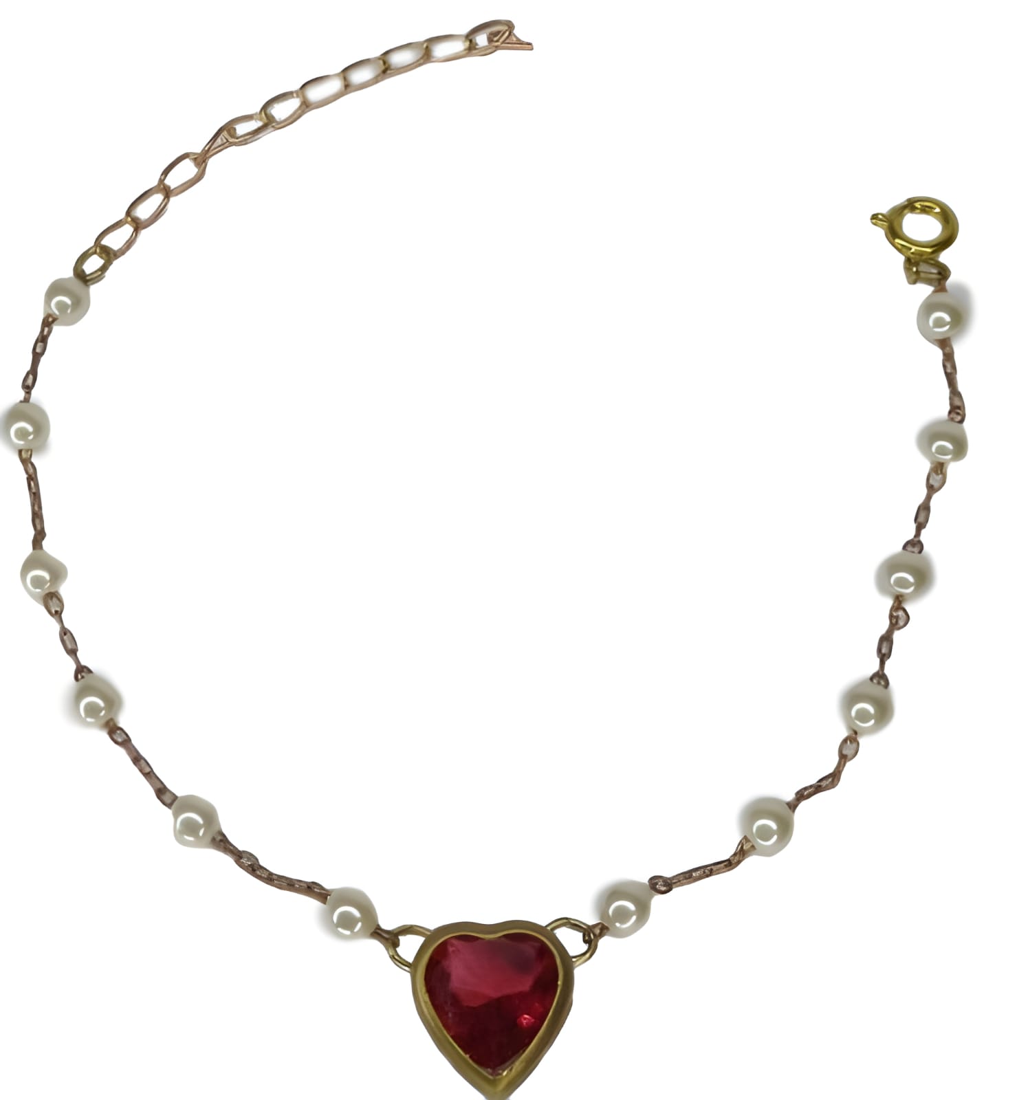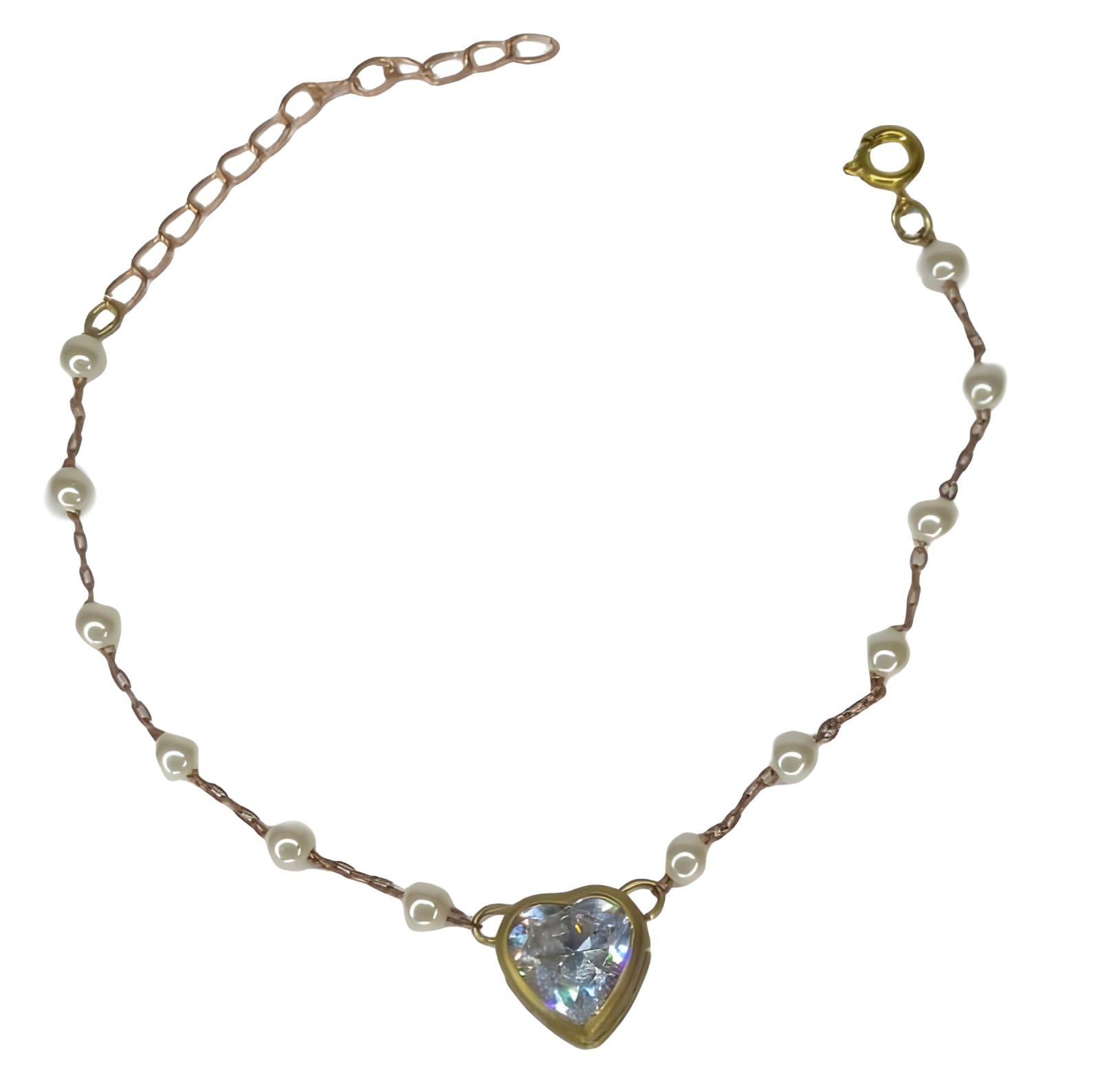 PULSEIRA CORRENTE DE PEROLAS E CORACAO DE ZIRCONIA BRUTO